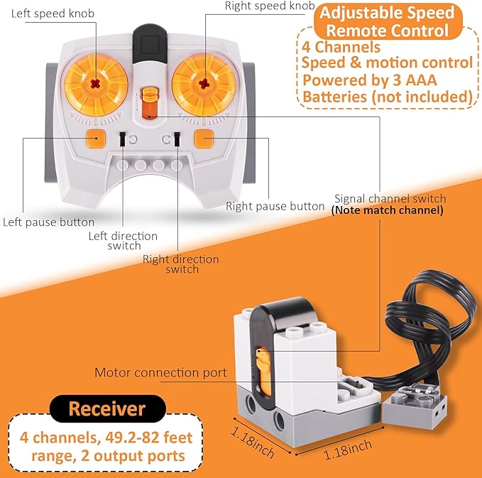 - Remote Control for Ultimate Flexibility: Take control of your motorized creations with the speed-adjustable technic remote control, providing you with the freedom to operate your motors anytime, anywhere. The 2.4G receiver ensures a stable connection, giving you the ability to control your projects from a distance. Unleash your imagination and explore endless possibilities with this comprehensive motor kit.