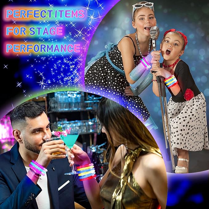 - ✨High Quality Materials: The glow bracelets are made of transparent acrylic, with good transparency, safe, no bad smell, waterproof, sturdy and can be applied with confidence; Also, each led bracelet is individually wrapped in OPP bags to ensure they are safe in your hands.