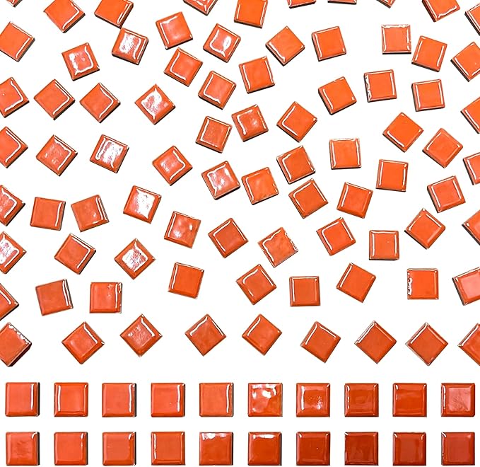 100 Pieces Ceramic Mosaic Tile 3/5" Square Shapes Mosaic Ceramic Pieces Stained Ceramic Tile Supplies for Crafts Beginner Mosaic Project Stepping Stones Mosaic Birdhouse Decor - Orange