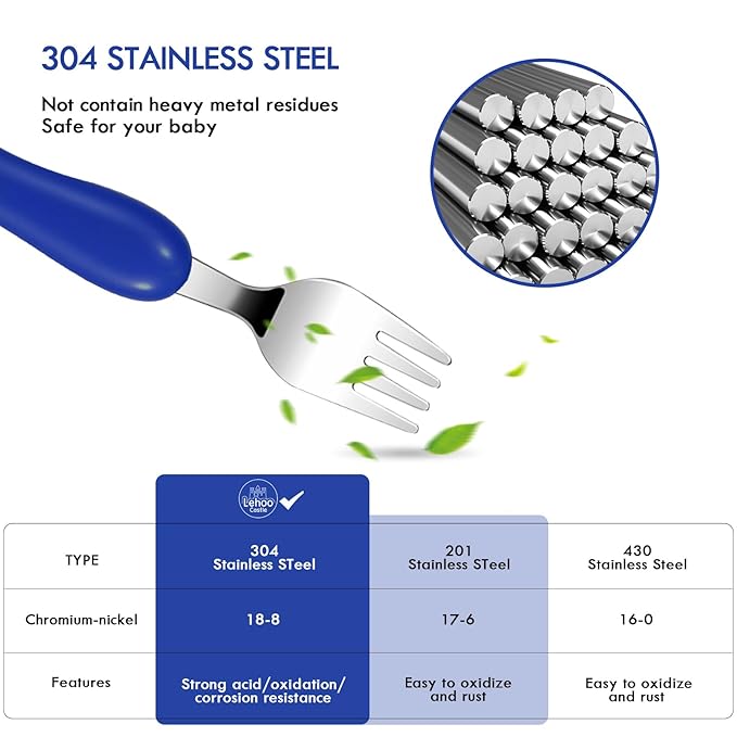 - SAFE TODDLER UTENSILS SET: Made of durable food grade stainless steel, all non-corrosive, BPA-free and easy to clean (NOT dishwasher safe to avoid color loss)
