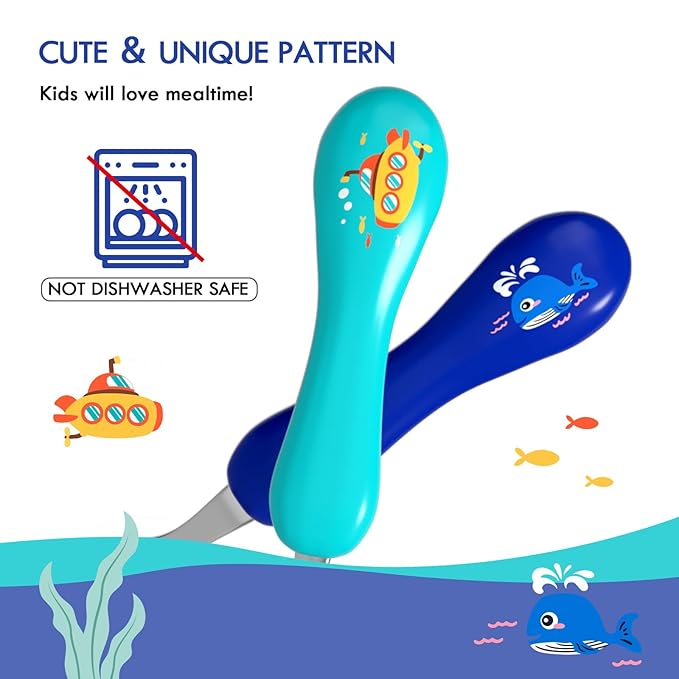 - EXCLUSIVE DESIGN FOR CHILDREN: Ergonomically designed for toddlers to grip in their small hands easily. Rounded forks and spoons without sharp edges won't hurt your little's mouth