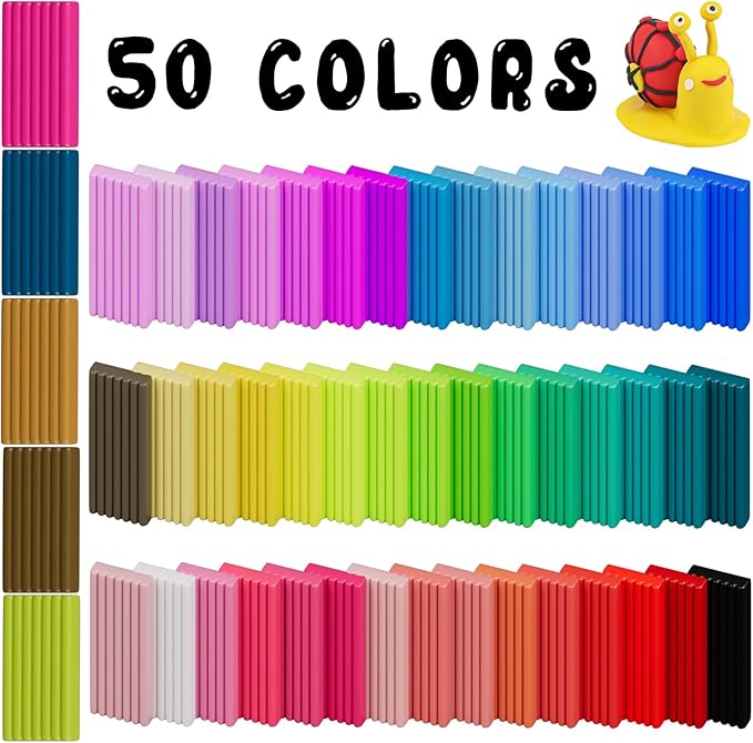 - Ideal Polymer Clay Kit for children and artists: 50-color polymer clay starter kits, good ductility, arbitrary fabrication, rich colors, satisfying matching, non-sticky, non-fading, easy modeling, especially suitable for artistic creation.