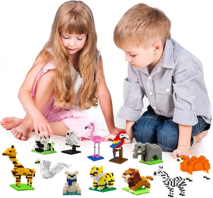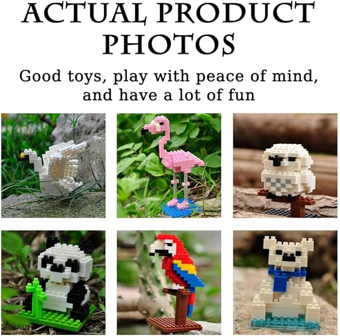 - Cute Forest Animals: This set of building blocks contains 12 different forest animals, such as giraffes, tigers, lions, elephants, zebras, camels, red-crowned cranes, parrots, swans, owls, pandas, white bears, etc., all with exquisite details and cute expressions, making children unable to put them down.