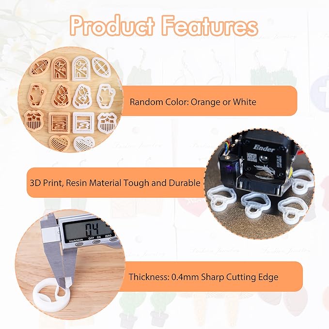 - [High Quality Clay Earring Cutters]: These clay cutters are 3D printed and made of high quality resin material, cut clear shape and help making beautiful clay piece. It's more reliable and safety to use.
