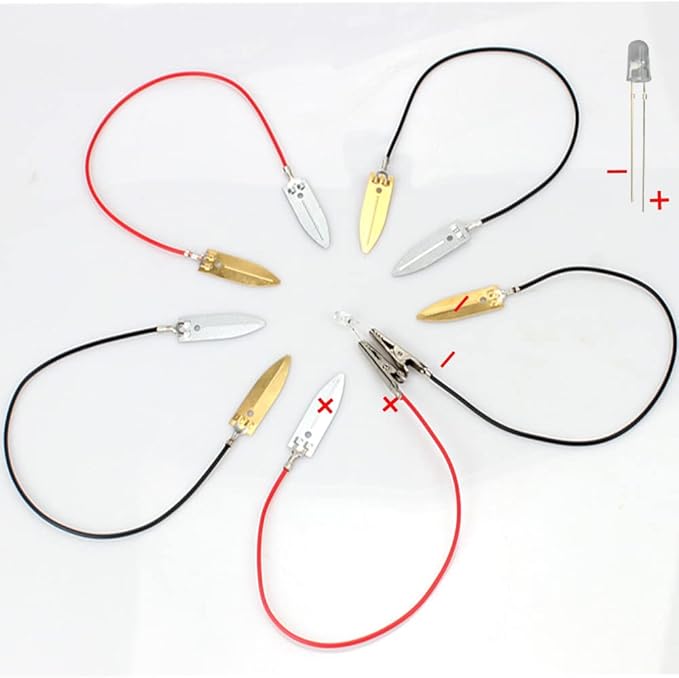 - PACKAGING INCLUDES: You will get 3 sets fruit battery science experiment kit, which include 12 pieces of copper sheets, 12 pieces of zinc sheets, 3 pieces of electronic clocks, 6 pieces of RGB LED, 12 pieces of wires, 6 pieces wires with clip, 3 whole sets for you to apply