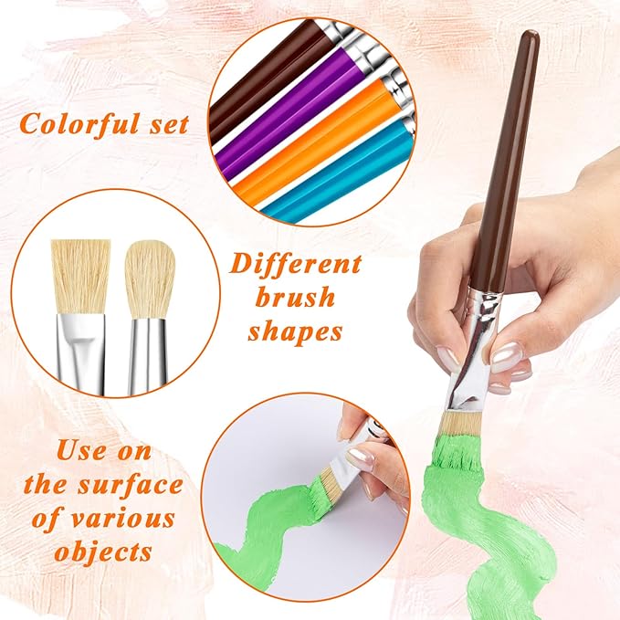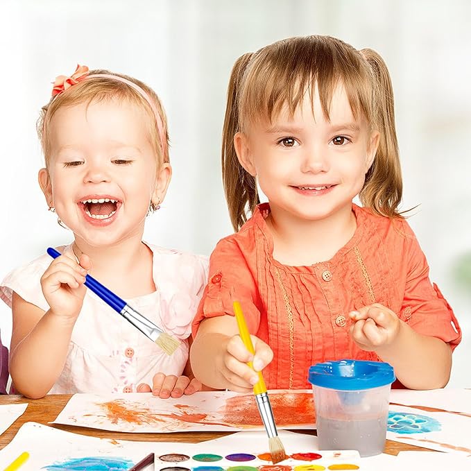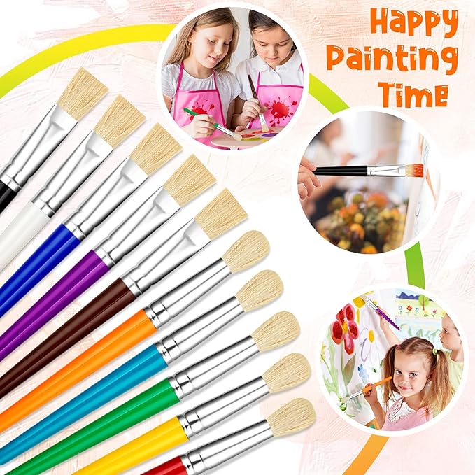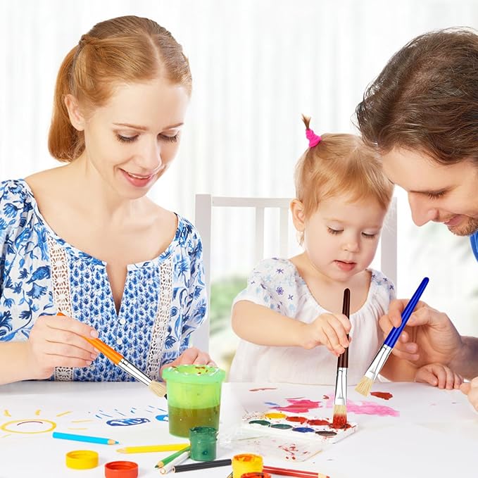 - Wide Range of Uses: A complete and nice selection of round and flat paint brushes kit, which work with washable paint and acrylic paint. These round and flat paintbrushes are ideal for kids' school projects, birthday parties, painting party, art party, paintings and more
