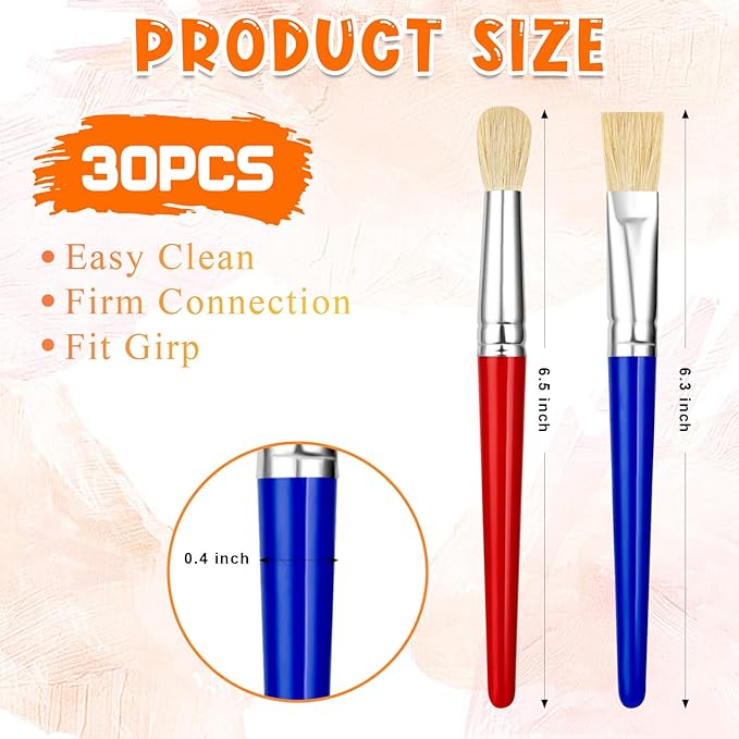 YGAOHF 30 Pcs Paint Brushes for Kids - Colorful Kids Paint Brushes Big Chubby Toddler Paint Brushes, Easy to Clean & Grip Round Flat Preschool Paint Brushes for Acrylic Washable Paint