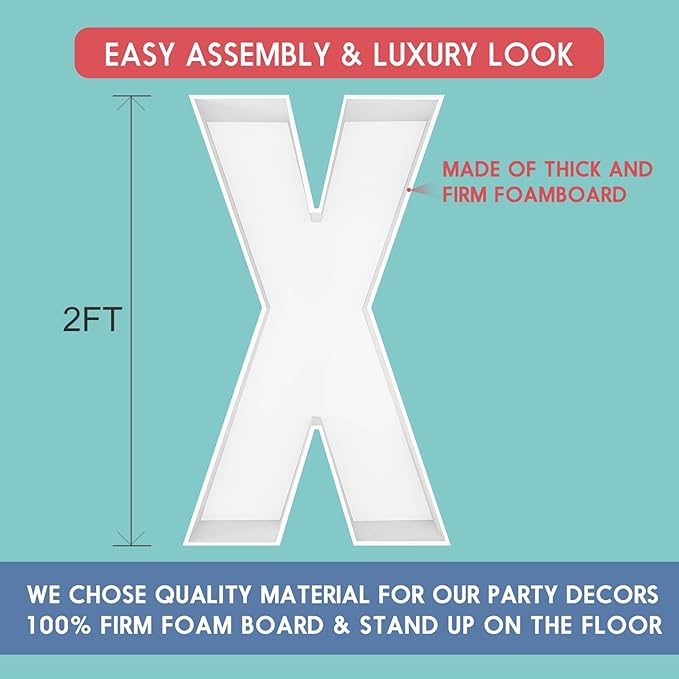 2FT Letter X Mosaic Balloon Frame Letter DIY Fillable Letters Kit for Birthday Party Wedding Backdrop Decor