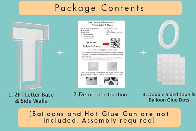 - FAST and EASY ASSEMBLY - Decorate your party like an event balloon artist! Our 2ft mosaic balloon frame letters are pre-cut to the perfect measurements, saving you the hassle of printing, measuring, and cutting templates yourself!