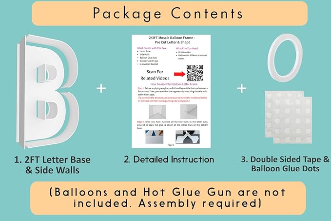 - FAST and EASY ASSEMBLY - Decorate your party like an event balloon artist! Our 2ft mosaic balloon frame letters are pre-cut to the perfect measurements, saving you the hassle of printing, measuring, and cutting templates yourself!