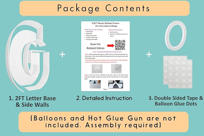- FAST and EASY ASSEMBLY - Decorate your party like an event balloon artist! Our 2ft mosaic balloon frame letters are pre-cut to the perfect measurements, saving you the hassle of printing, measuring, and cutting templates yourself!