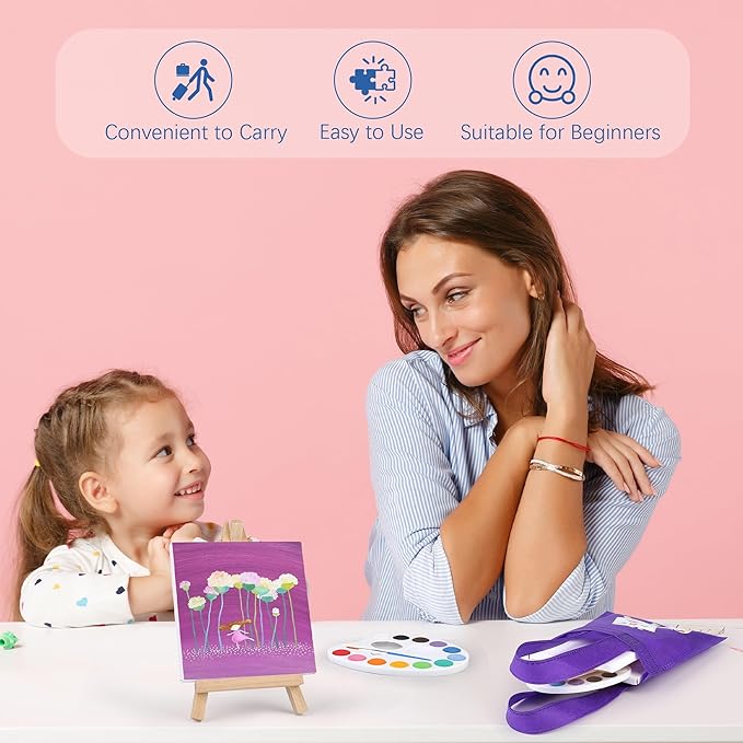Aodaer 48 Pieces Mini Watercolor Paint Set Include 12 Colors 4 x 4 Inch Watercolor Paints, Wooden Canvas Easels, Canvas Tote Bags, Aprons, Back to School Art Beginner Supplies for Kids