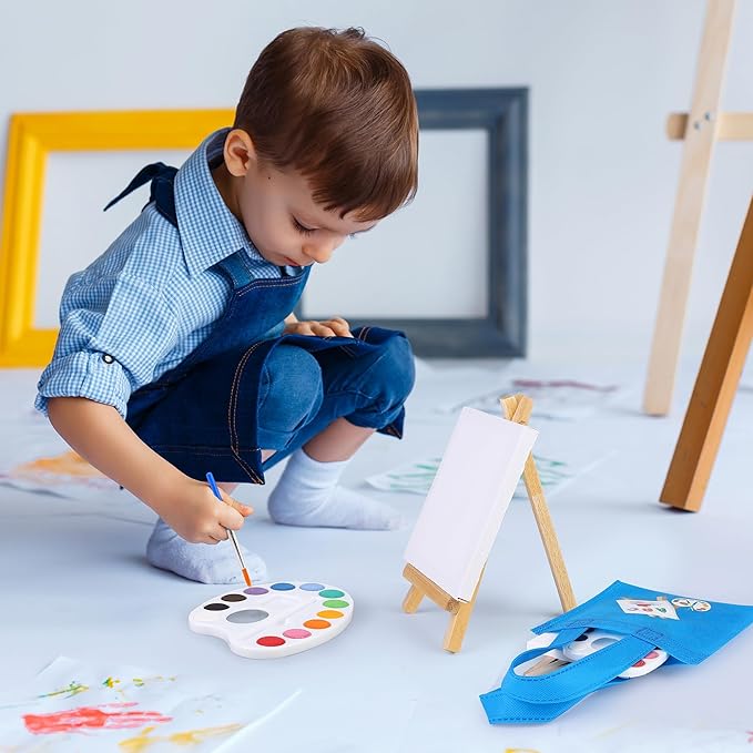 - Package includes: you will receive 12 pieces of watercolor paint, 12 pieces of mini wooden painting canvas easels, 12 pieces of painting aprons, and 12 pieces of canvas tote bags, 48 pieces in total; the sufficient quantity can meet your painting and learning needs, making it an excellent gift for students
