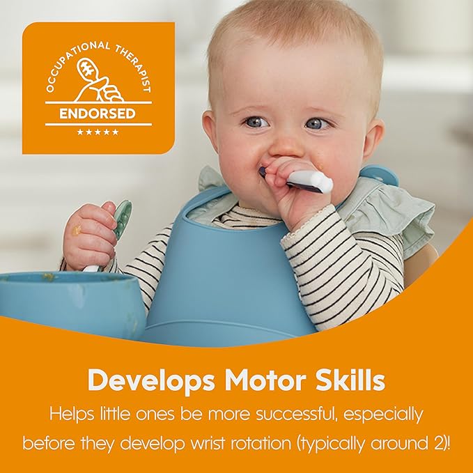 - Revolutionary GOOtensils: Baby utensils (ages 4-18 months) perfect for introducing solids - no scooping, no balancing, and best of all: no wrong way to hold it! Thicker, contoured handled baby spoons designed to comfortably and securely fit a child's hand