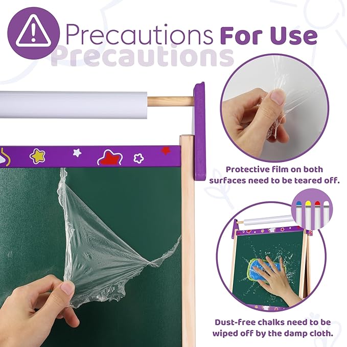- 【Unlimited Creation Ways】Infinite creative toddler learning activities further stimulate children's creativity. This magnetic easel features a double-sided magnetic board for kids whiteboard and blackboard, providing a multifunctional surface for creative expression and learning. We have provided two rolls of paper to provide more creative choices, allowing children to use chalk and markers. A built-in tray can hold all their art supplies, making them within reach during the painting process.