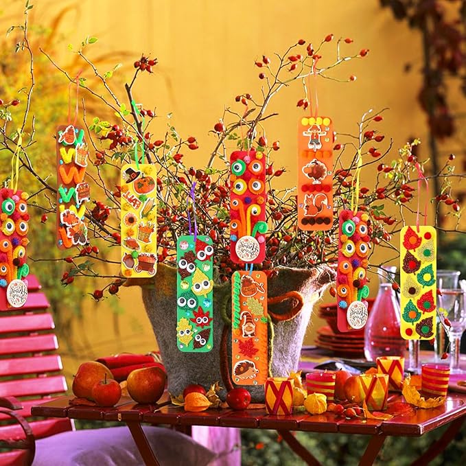 - 【36pcs Foam Bookmarks Craft Kits】 Our fall DIY crafts kit has 36 bookmarks totally. These foam bookmarks are punched with holes on the top, You can use satin cords to hang foam bookmarks on cars, gift boxes, walls, fall party, and other occasions. You can also use double-sided adhesive dots to secure our Thanksgiving crafts. The Thanksgiving bookmarks are not only unique, but also durable, add beauty to your books, and is a must-have and personalized small accessories at home