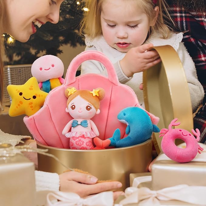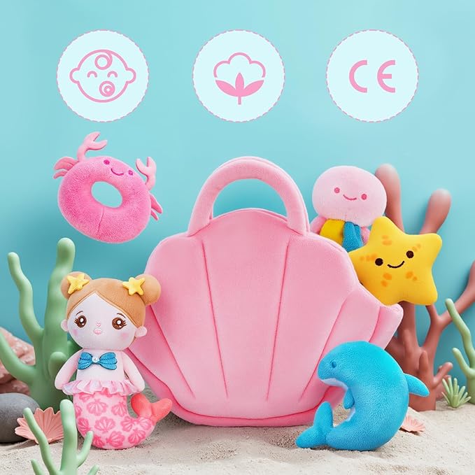 - 😊SOFT & MACHINE WASHABLE:This soft mermaid toy set is made of high quality grade A plush fabric, super soft, safe, non-toxic, durable, close to sensitive skin, easy to clean, machine washable, hand washable.