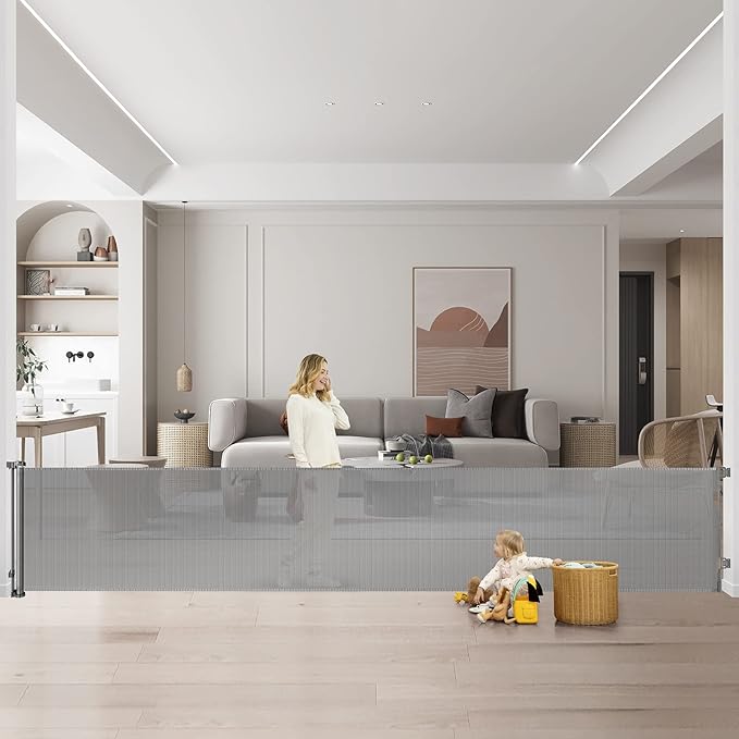 - Saving Space: the extra wide baby gate is retractable gate, so when you're having a party at home or when your babies and pets are not at home you can roll up the mesh and not take up your space.