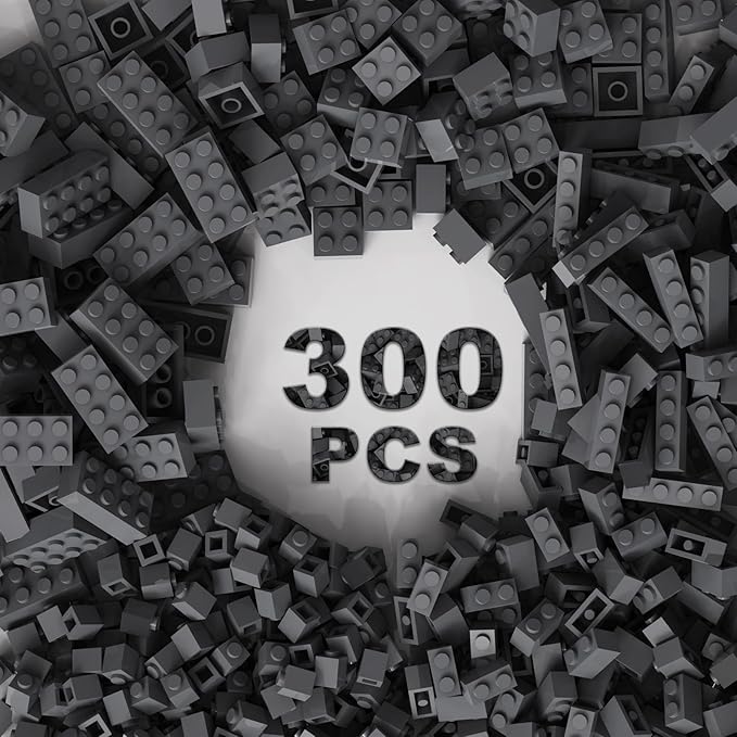 300 Pcs Classic Building Bricks, Dark Grey Bulk Bricks,Compatible with Lego and Major Brands Parts and Pieces, Creative Building Block Toys for Boys Girls Ages 6 7 8 9 10 Year Old
