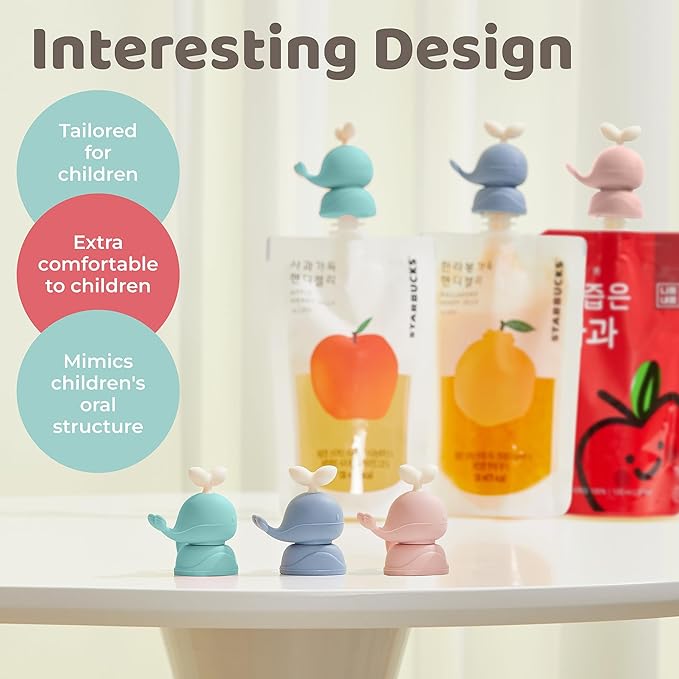 - ✅Safe Material & BPA Free - Firgi Pouch toppers that are made of 100% food-grade silicone and non-toxic materials Korean baby products, ensuring your baby’s safety during feeding. And the adorable whale designs stimulate the child’s interest and help to increase concentration.