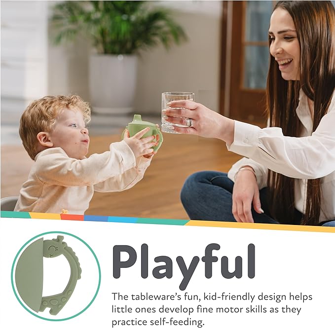 - DESIGNED FOR LITTLE HANDS: The Silicone Sippy Cup's two-handle design makes gripping easier as children's dexterity and hand strength improve