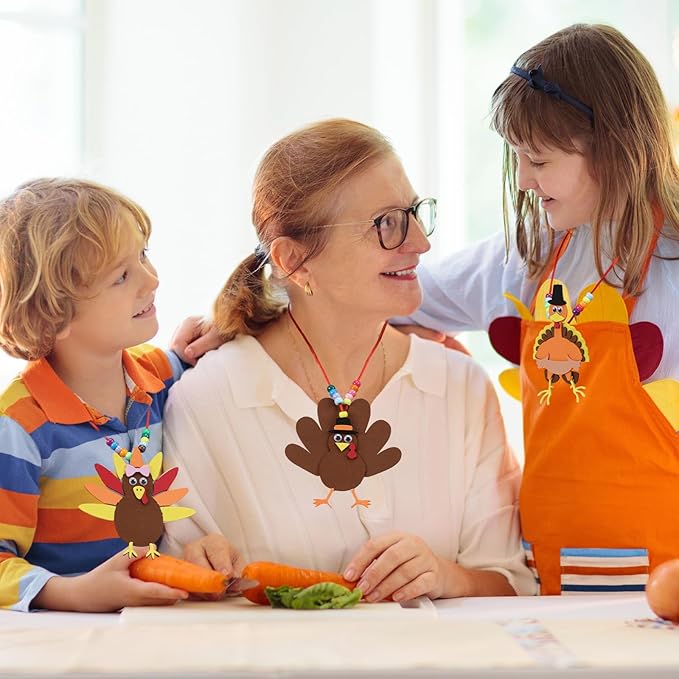 - Thanksgiving DIY Craft Set: the package contains 24 pieces of turkey necklace craft kits, a total of 60 pieces of beads, with 4 colors, 15 pieces for each color, sufficient quantity is desirable for you to DIY with your friends and families, enrich your spare time and bring you more fun