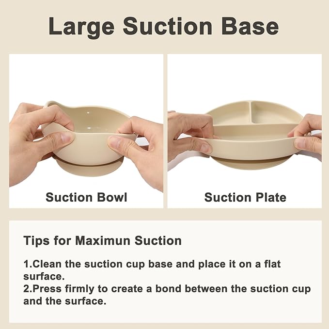 - Strong Suction: Our baby plates and baby bowls features a strong suction base that securely adheres to smooth surfaces, including high chair trays, preventing your baby from pulling it off. The divided plate design holds various foods separately, allowing your baby to learn self-feeding without worrying about making a mess on the floor or dropping plates and bowls. Enjoy every mealtime moment with you and your baby.