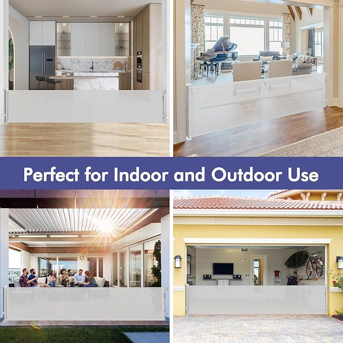 - [Retractable Gate to Save Space] - This retractable baby gate is easy to use in high traffic areas. When not in use or when guests are visiting, the large baby gate retracts to save space. Give your home more space and flexibility, and you don't have to worry about tripping over a bulky gate that's always in the way.