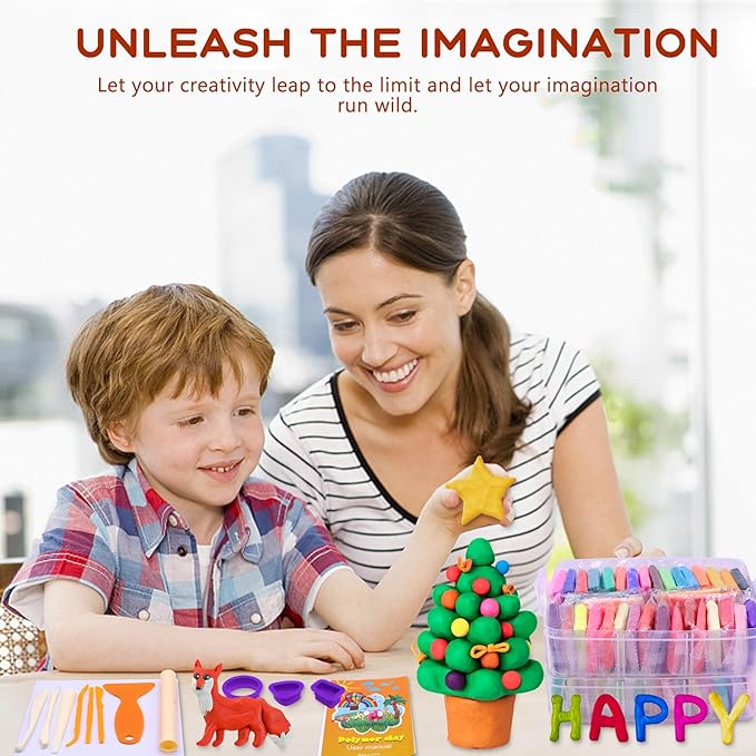 • Enhance Ability: Our polymer clay is designed to be user-friendly for all ages and skill levels.Polymer clay kit can rub, lick, pinch, tear, twist, press and so on, modelling clay is ideal for developing manual skills and hand-eye coordination. Working with oven bake clay can be a relaxing and stress-relieving activity, clay set for kids improve focus and patience. Polymer clay is a flexible and versatile art material. Baking clay kit is an ideal gift for kids, adults, friends and new beginners
