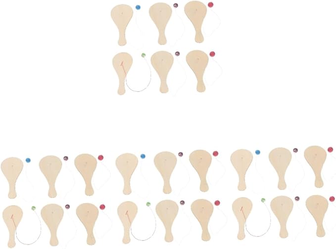 24 Pcs White Billet Wooden Racket Wood Paddle Ball Toy DIY Graffiti Paddle Ball Kid Paddle Ball Toy Wooden Paddle Ball Graffiti Wood Paddle Ball DIY Wood Paddle Ball