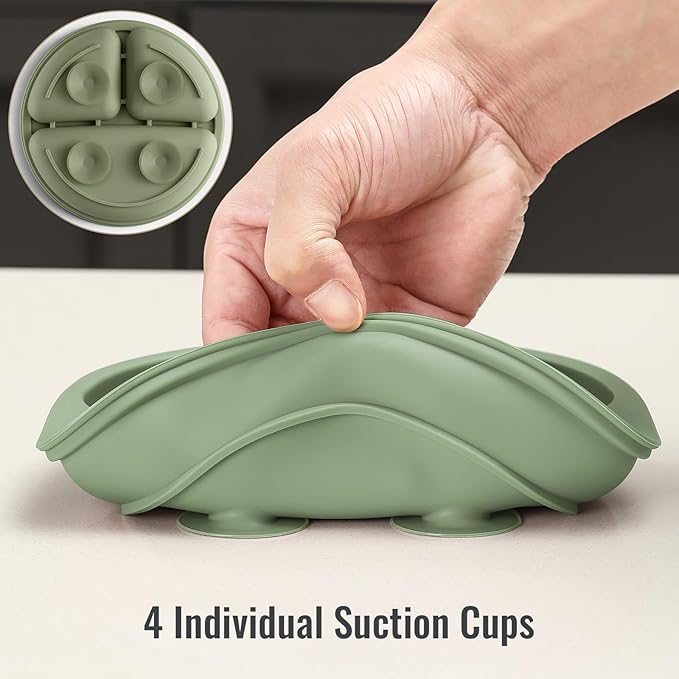• MORE & STRONGER SUCTION CUPS: Different from the prefer one-suction plate that is easy to pull off, our plates have 4 suction cups to strengthen suction power, and each suction cup is evenly distributed on the bottom to keep the plate stable and pull proof, minimizing spills when your little ones learn how to feed themselves. It sticks well to anything, especially on children’s highchair trays and last throughout the whole meal.