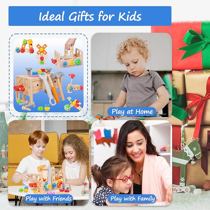 - QUALITY GIFT FOR KIDS - This wooden tool set for kids toddler is a great set of toys that can teach kids how to use various tools, but also improve children's thinking ability and creativity. it is an ideal gift for toddler's birthday, Easter, Christmas and so on.
