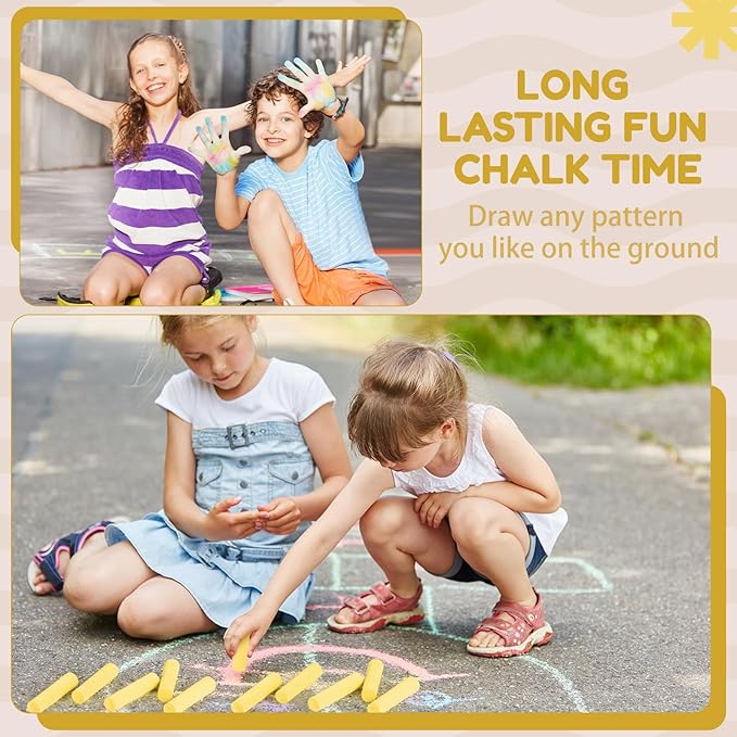 Fulmoon 40 Pcs Jumbo Sidewalk Chalk for Kids Outdoor Art Non Toxic Large Washable Street Chalk for Adults Drawing Painting Graffiti Classroom(Yellow,Round Style)