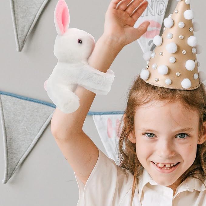 Abaodam Animal Slap Bracelet Rabbit Slap Bracelet Plush Bunny Stuffed Animal Hugger Snap Wristband for Kids Birthday Party
