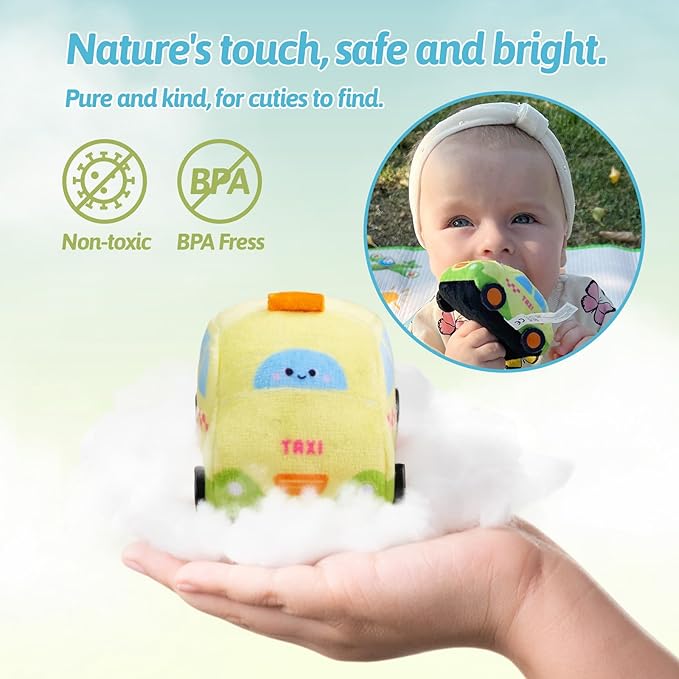 - 🚕SAFE & SOFT:This soft car toy set is made of high quality grade A plush fabric, super soft, safe, non-toxic, durable, close to sensitive skin, easy to clean, machine washable, hand washable.
