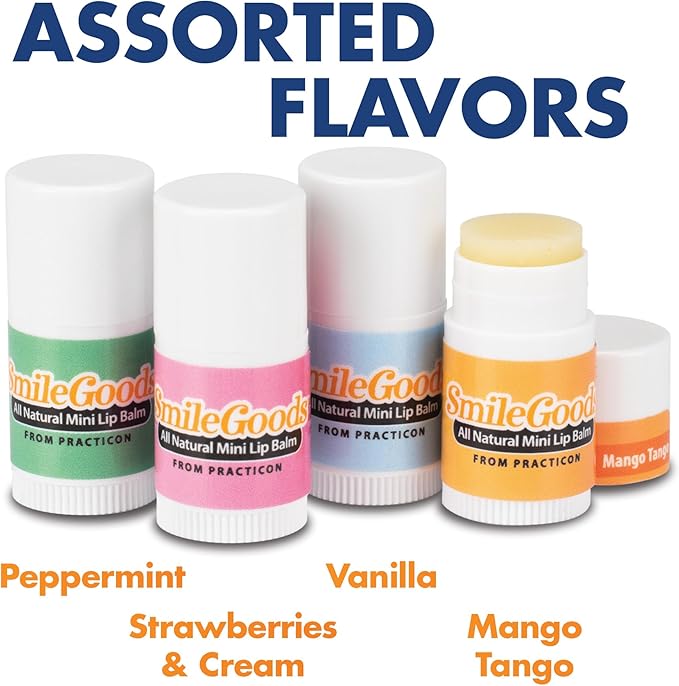 - Travel Kit Includes:Y311 SmileGoods toothbrush with an ergonomic non-slip grip, flat-trimmed bristles and a suction cup base. SmileGoods waxed bubble gum floss, 0.85 oz. tube of Crest toothpaste, SmileGoods lip balm mini tube and 3-minute brushing sand timer.