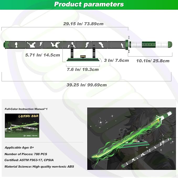- Regular Katana Size: This katana sword contains 788 blocks, it comes with a scabbard and a stand. This Sanemi sword is composed of high-quality building blocks. The 39-inch length makes it closer to a katana sword, giving you a perfect grip, It Is the best choice for cosplay. Note that it only supports light swing, please don't swing it vigorously.