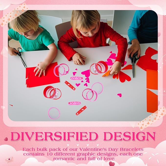 - Bulk Pack: Valentine's Day is about spreading love and joy, and with our package of 300 wristband bracelets, you can do just that; It's a fantastic bulk buy for those who need to share the love on a larger scale such as school events, party favors, gifts, or Valentine's Day gatherings