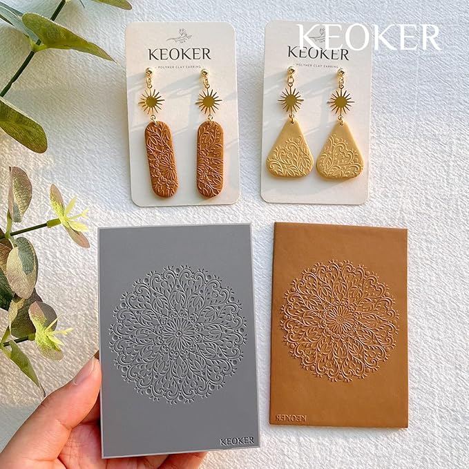 KEOKER Polymer Clay Texture Sheets Set, Clay Earring Molds for Earrings, Works with Boho Polymer Clay Cutter,The Same Effect as Polymer Clay Texture Roller, Boho Texture Sheets for Polymer Clay (1)