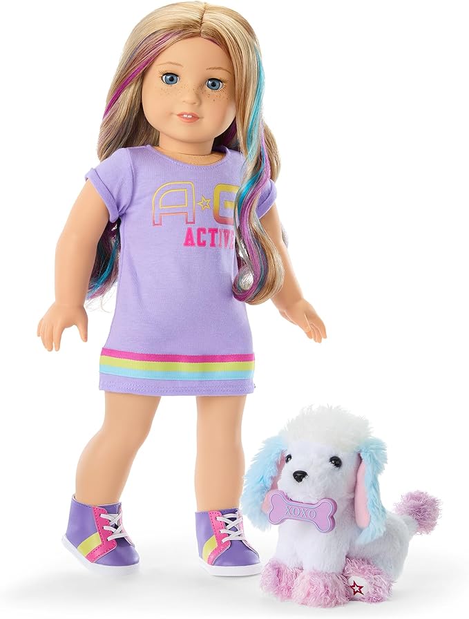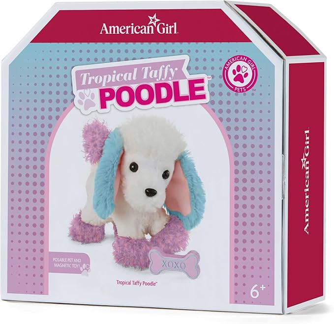 American Girl Truly Me 18-inch Doll Tropical Taffy Poodle Pet with Pink Bow and Dog Bone Toy, for Ages 6+