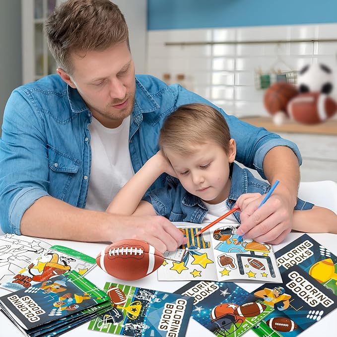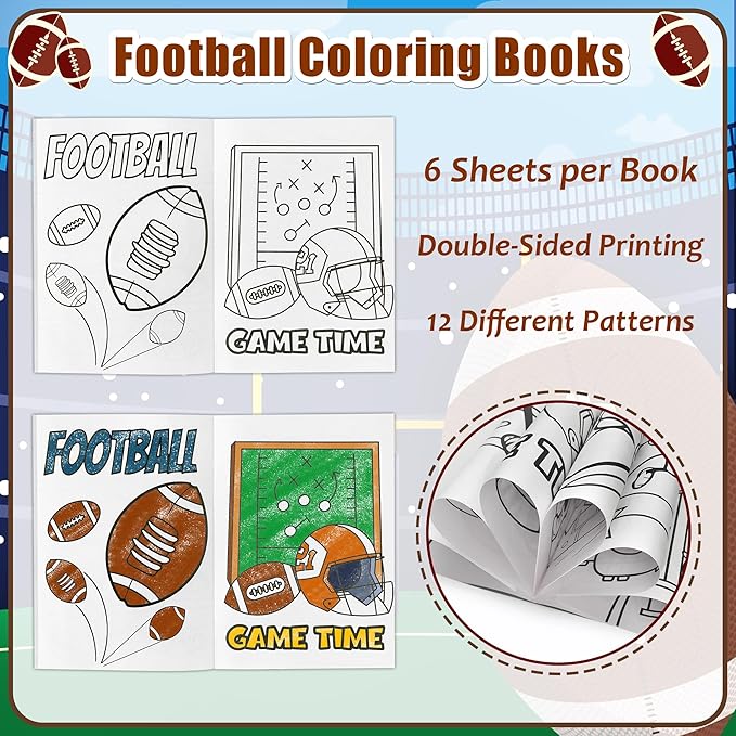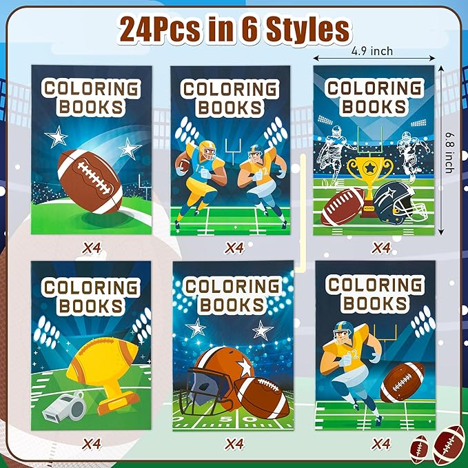 24Pcs Football Coloring Books Sport Theme DIY Color-in Pages Football Helmet Glove Trophy Drawing Booklet Party Favors Gifts Classroom Reward Home Art Activity Supplies for Kids Toddlers