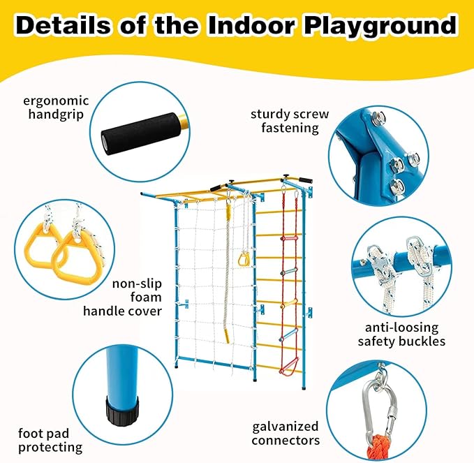 - ➤Sturdy and Safe Climbing Toys for Kids--This indoor playground features high-quality carbon steel climbing toys designed specifically for kids. These durable, robust structures ensure long-lasting performance and provide a safe, exciting play environment for children. The kids will enjoy this and you will have more free time for relaxing yourself.