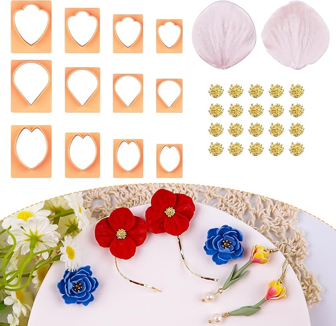 - Flower Polymer Clay Earrings Making: We made 20 pcs flower pistil charms in these flower petal clay cutters set, so you can use these charms making at least 10 pair of flower clay earrings. They are packed in a small plastic box, easy for storage.