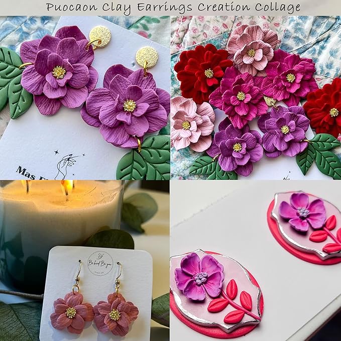 - Flower Polymer Clay Jewelry Design: You can use these clay cutters cutting off petal shape, overlay different size petal pieces to make beautiful flower clay jewelry. Add the flower pistil charms to the top, making beautiful flower polymer clay earrings.