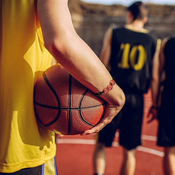 - 【High Quality Materials】Our basketball bracelet is made of quality waxed thread and acrylic material, which is reliable and will not fade, smooth surface, lightweight, and is not easy to break which can accompany you for a long time