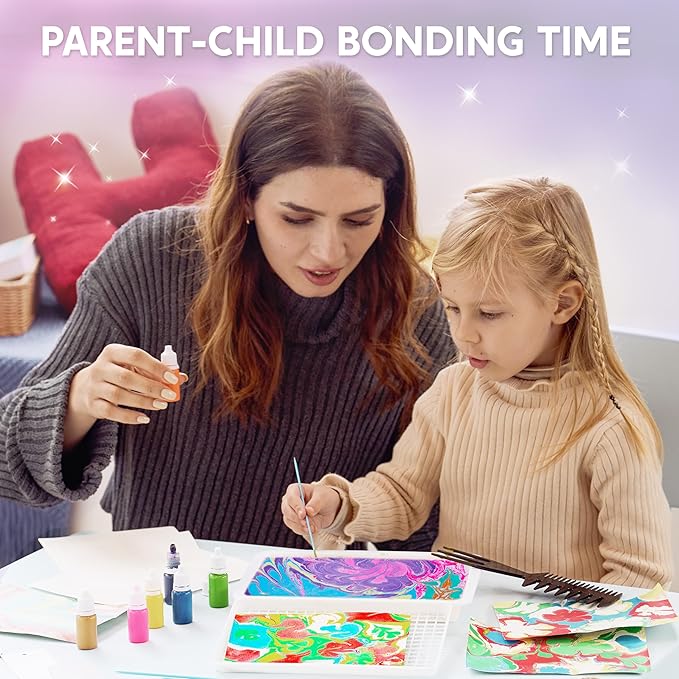 - Perfect Gift Choice: Our marbling paint kit is perfect for various occasions, such as art and crafts classes, STEM projects, or DIY activities. It guarantees hours of creative enjoyment and makes a thoughtful gift for Parent-Kids Bonding Day, Easter, Thanksgiving, and Christmas. Let your little ones delight in crafting their own unique patterns with this perfect gift for kids. Suitable for kids aged 6 years and above.