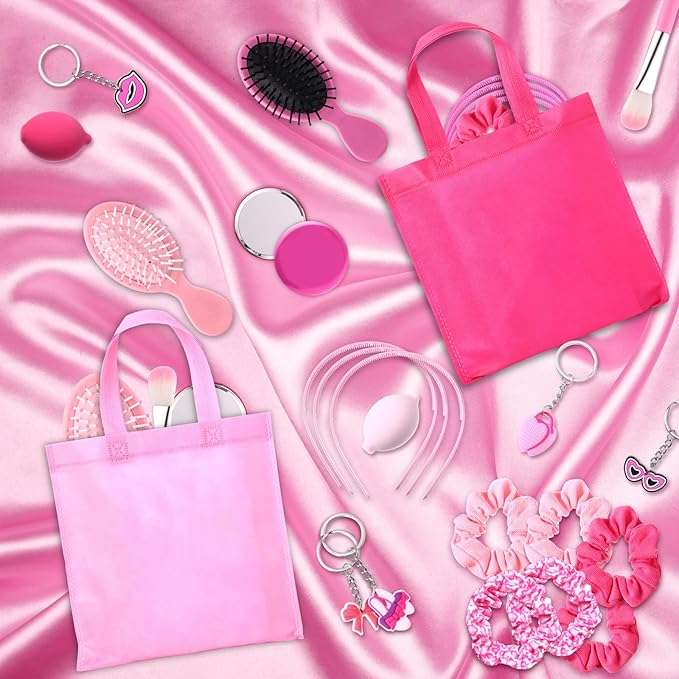 • Comprehensive Party Kit: this kit contains 108 pcs items, including 12 keychains, 12 small compact mirrors, 12 makeup brushes, 12 sponges, 12 party favor bag for girls, 12 heart sunglasses, 12 hair brushes, 12 headbands, and 12 hair ties; This complete package serves as a gift catering for all your party favor needs for birthday party, slumber party, or princess theme party