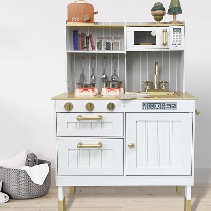 Kids Kitchen Playset,Children Play Kitchen for Toddler,Baby Toy Kitchen Set,Pretend Wooden Kitchen,Birthday Gifts with Play Sink Toy,Lights Sounds, Cooking Set for Kids Ages 3+Boys Girls