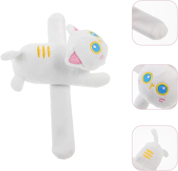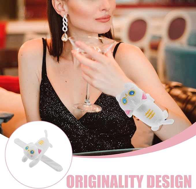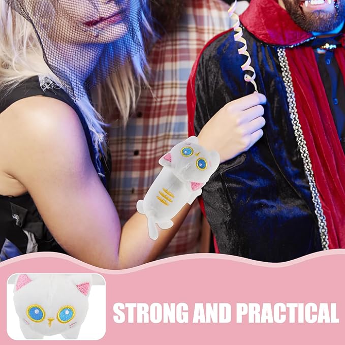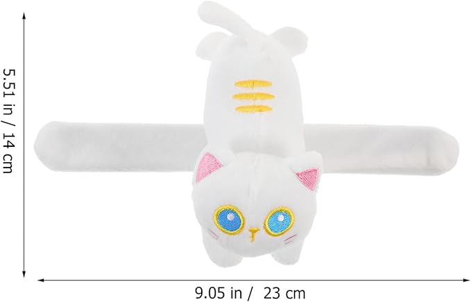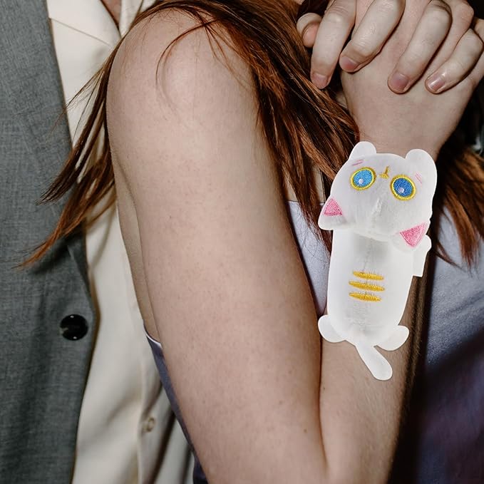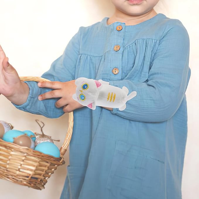 Vaguelly Cat Slap Bracelet,Stuffed Animal Slap Bracelets Adorable Plush Animals Huggers Slap Bracelets Interactive Toy for Kids Birthday Party Gifts White