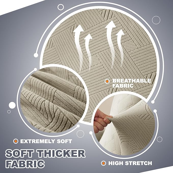 - Upgraded Unique Pattern: JIVINER newest recliner chair covers crafted by 85% polyester and 15% spandex jacquard material, soft to touch, skin friendly and more durable for using. Featuring with latest regular interlacing jacquard pattern, giving your home and recliner a fresh look with thicker slip covers for recliner chair